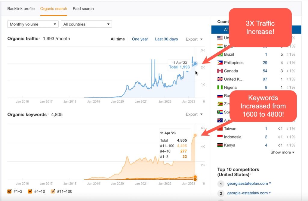 Unbelievable ranking increases for Estate Planning Attorney, Seidentopf Law Firm. We implemented top SEO tactics to have this law firm stand out in an extremely competitive market, Atlanta, GA.
