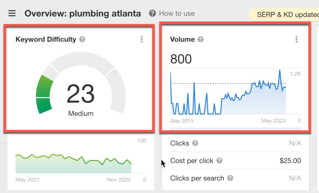 Keyword Research can tell you the volume of searches in an area. (Check out the image here) there are about 800 searches a month in Atlanta, GA, for plumbing. We can use this data to our advantage!