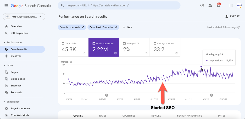Our SEO efforts had a significant impact on Siedentopf Law’s website traffic, lead generation, and search engine rankings. Within six months of implementing our strategy, their website saw a 150% increase in organic traffic, and their keyword rankings for their target terms improved dramatically. In addition, their website’s domain authority increased by 15 points, which helped them rank higher for more competitive keywords.